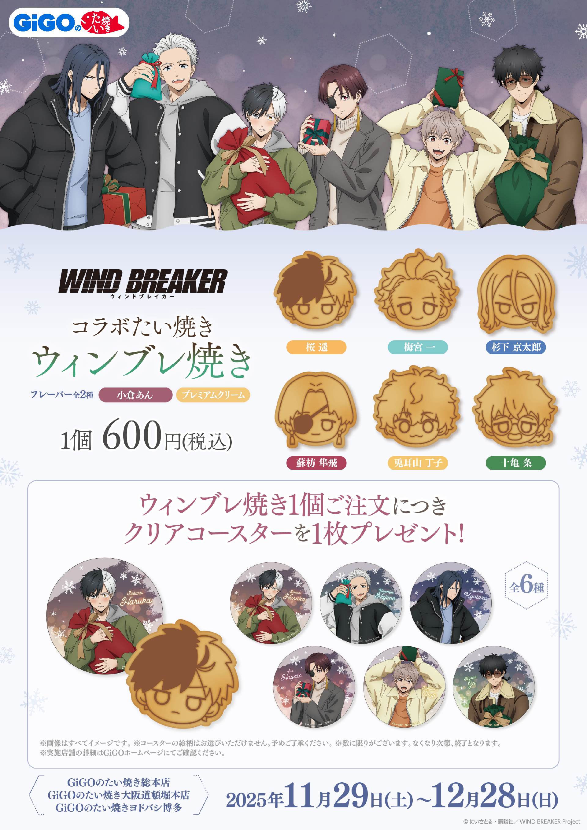 - GiGOのたい焼き総本店をはじめとした全国3か所で、コラボたい焼き「ウィンブレ焼き」の販売を行います。